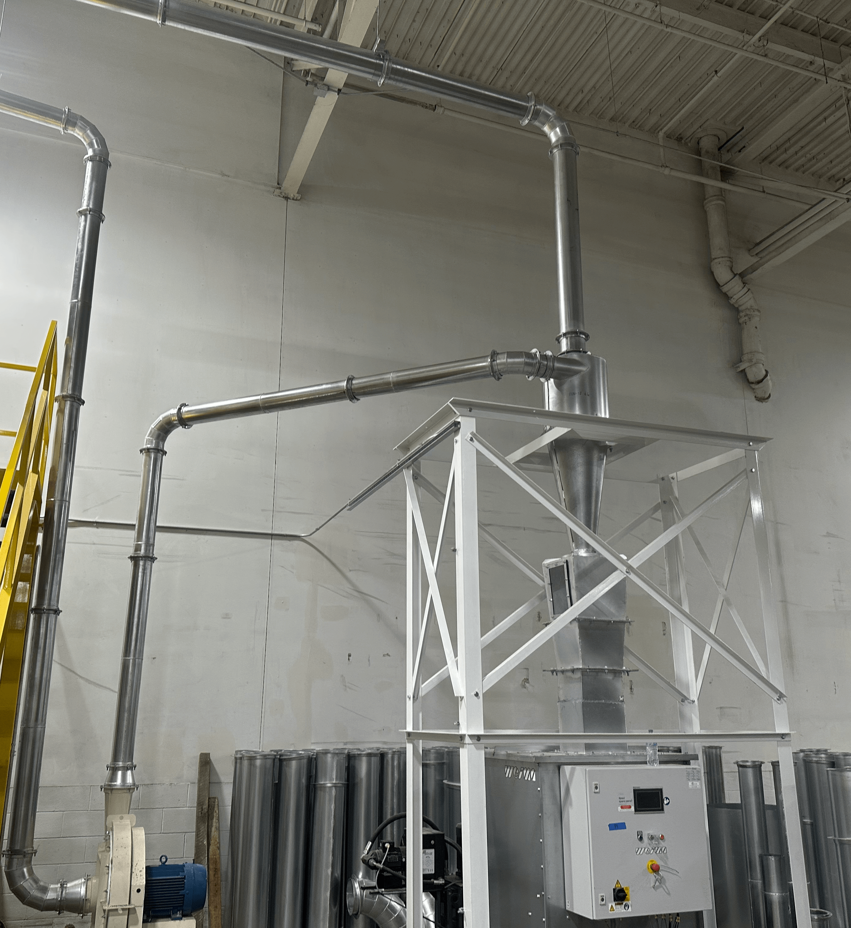Cyclone separators from ERS deliver powerful, efficient separation of particulate matter from high-volume airstreams — engineered for fibrous, granular, and abrasive dust in industrial environments. At Engineered Recycling Systems, we design and integrate cyclone separator systems that deliver powerful, efficient separation of particulate matter from high-volume airstreams. Engineered for industrial environments, our cyclone separators are ideal for applications involving fibrous, granular, and abrasive dust—such as paper, plastic, wood, and metal processing.